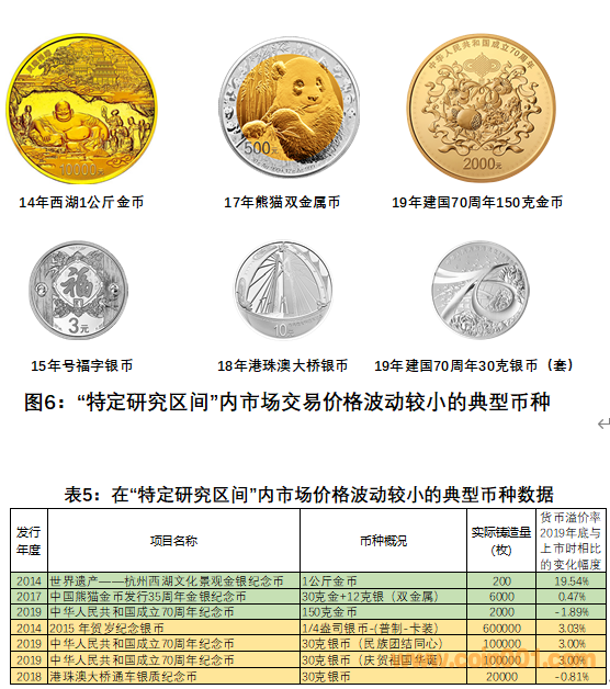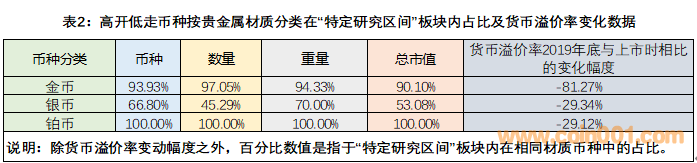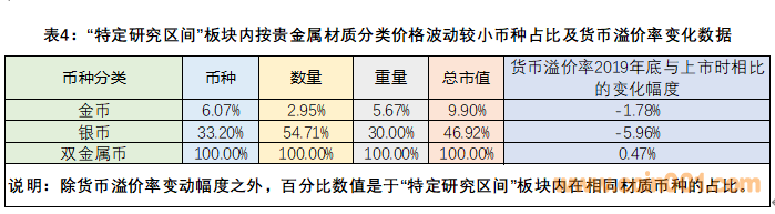 按貴金屬材質分類,“特定研究區間”板塊內交易價格相對穩定的幣種數據見表4.