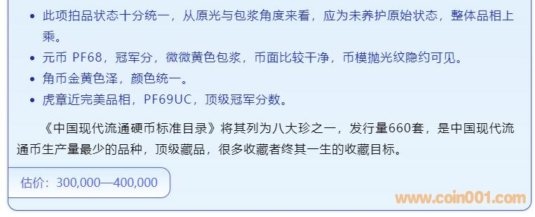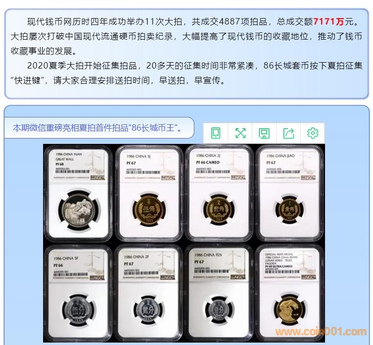 現(xiàn)代錢幣網(wǎng)歷時(shí)四年成功舉辦了11次大拍,共成交4887項(xiàng)拍品,總成交額7171萬(wàn)元。春秋大拍屢次打破中國(guó)現(xiàn)代流通硬幣拍賣紀(jì)錄,大幅提高了現(xiàn)代錢幣的收藏地位,推動(dòng)了錢幣收藏事業(yè)的發(fā)展。