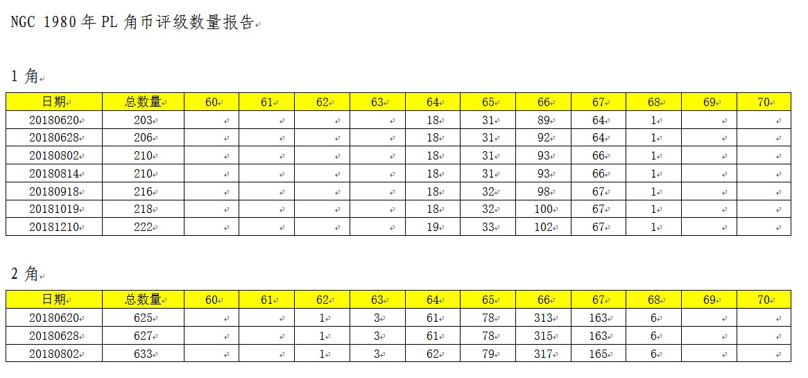 NGC 1980年PL角幣評級數量報告
