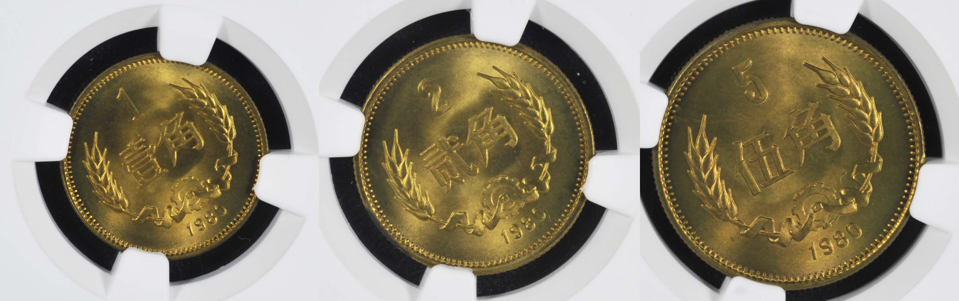 1980年長城角幣是建國后發行的第一套角幣類硬幣輔幣,也是長城系列流通幣中的第一個年份。分1角、2角、5角三種面值,正面面值加年份,背面國徽和國名。