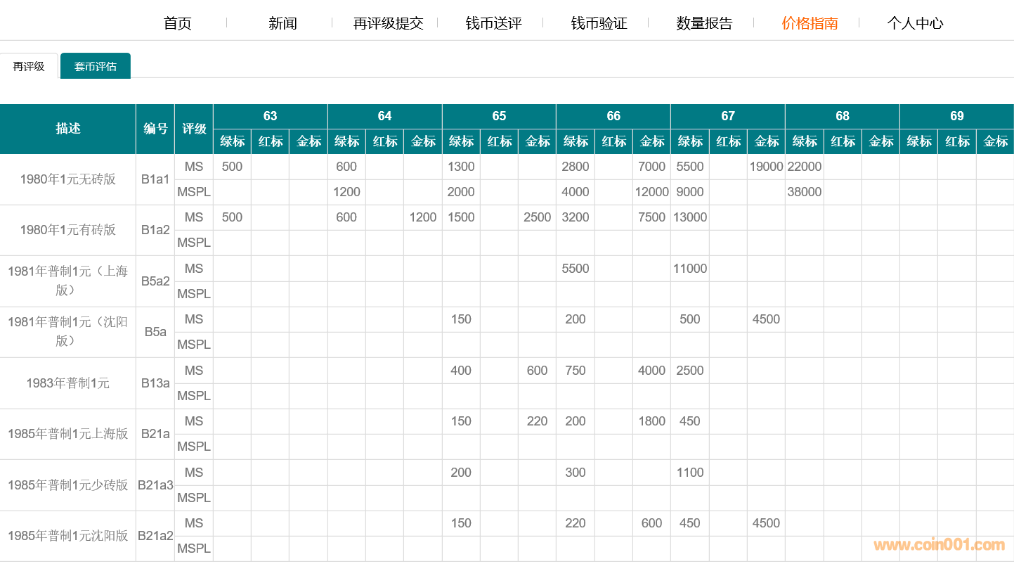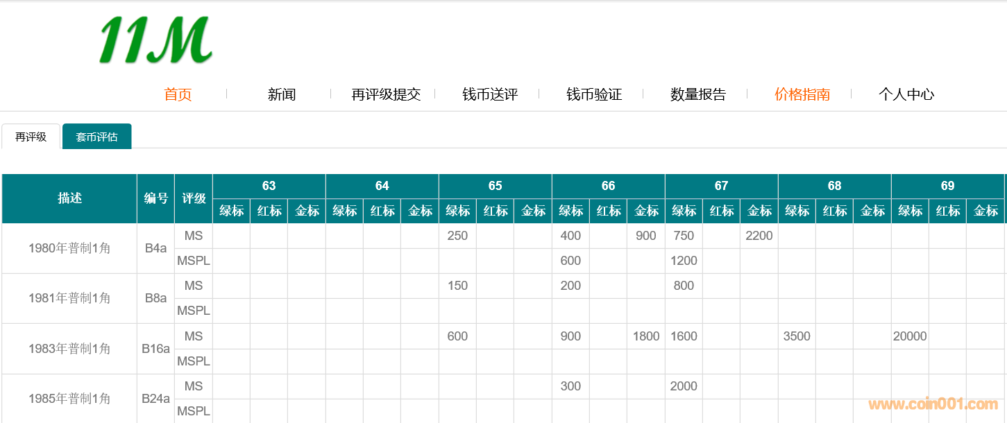11M再評級公司成立于2017年,在過去2年多的時間里11M再評級取得了良好的口碑和市場認可度,目前再評級硬幣貼標的總量也已經突破1萬枚,其中不乏硬幣中的精品和大珍選擇送評11M再評級。 目前再評級業務已經基本涵蓋了硬幣的各個板塊,從板塊的角度來看,現代流通硬幣板塊表現尤為突出,貼標后增值尤其明顯,比如普制長城幣,再評級貼標后增值范圍通常在50%-1000%,其他硬幣板塊(精制紀念幣/精制長城/精制老三花等板塊)再評級貼標后增值也達到了30%-500%。 再評級增值主要參考11M官網公布的數量報告和再評級標簽(綠/紅/金)種類,通常再評級難度越高增值也就越明顯尤其體現在冠、亞、季軍分數,同一幣種相同分數,金標的增值最高,其次是紅標和綠標。 經過長期的籌劃,為了滿足更多收藏者和投資者的需求,除了已經建立的數量報告外,11M再評級將正式推出現代流通硬幣價格指南,我們相信價格指南的推出未來能更好的促進再評級市場交易和發展。 步驟: 進入11M官網 http://m.2ndbux.com/11m 點擊價格指南 進行分類查詢 1980年普制長城1元再評級價格 1980年普制長城5角再評級價格 1980年普制長城2角再評級價格 1980年普制長城1角再評級價格 |
