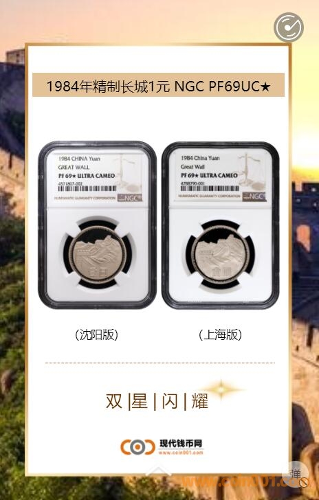 五、 1984年精制長(zhǎng)城1元NGC PF69UC★,上海版星標(biāo)之前已經(jīng)亮相,唯一一枚沈陽(yáng)版NGC PF69UC★也來(lái)了,該品種“雙星閃耀”。
