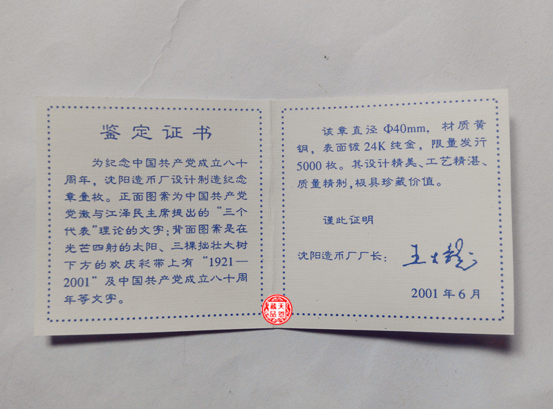 沈陽(yáng)造幣廠40mm紀(jì)念章 ..