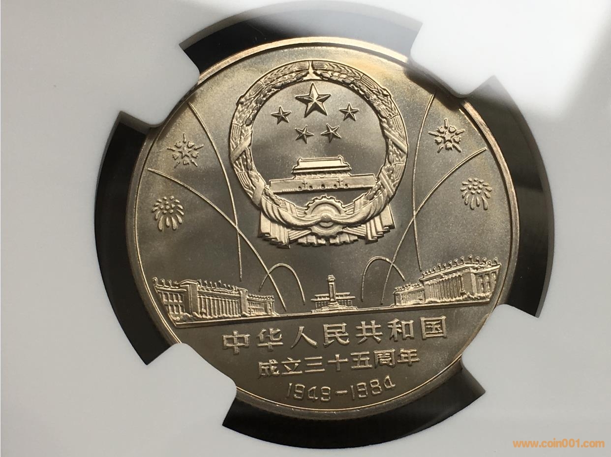 卡紙裝新中國成立35周年開國大典上海版精制幣分階段封裝,以上這種狀態多是中、晚期鑄造