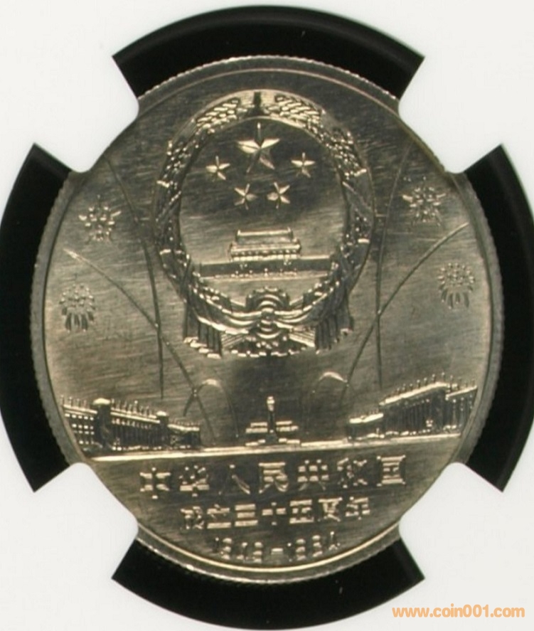 這枚“新中國成立35周年”普制流通紀念幣為沈陽造幣廠鑄造,即沈陽版