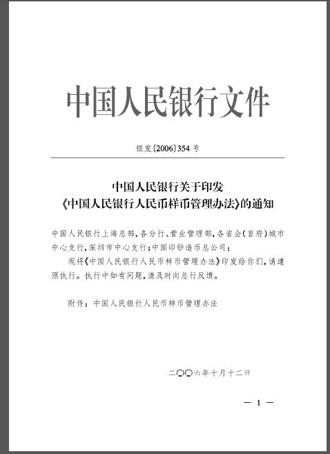 人民幣樣幣管理辦法-銀發[2006]354號的看點