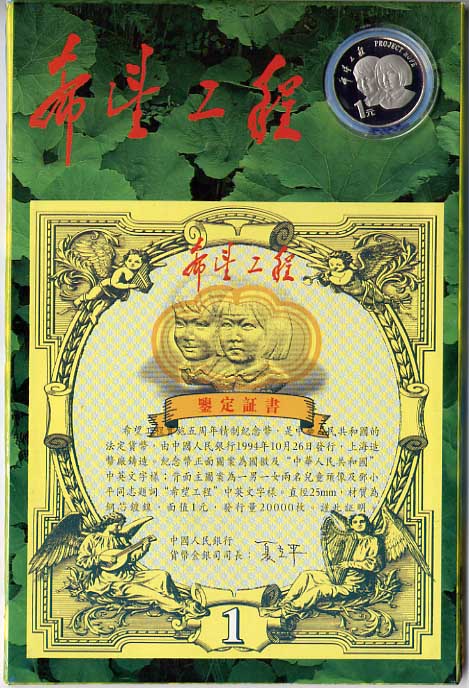 2、《一九九五年希望工程大事記》載:“ 1995年12月1日—4日應香港收藏家協會邀請,由全國青聯副主席陳肇雄、中國青基會海外部主任楊曉禹、中國人民銀行貨幣金銀司于鳳蓮處長組成的中國青基會代表團赴香港參加‘希望工程精制紀念幣’面市活動。中國青基會將18000枚希望工程精制紀念幣提供給香港收藏家協會,由該會與中國錢幣博物館重新裝幀后在香港面市,所得收入全部捐贈希望工程”。(理由)