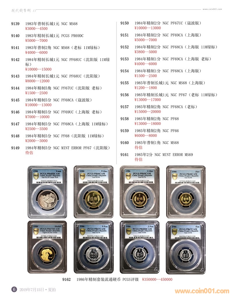 評級普通(精制)紀念幣交易