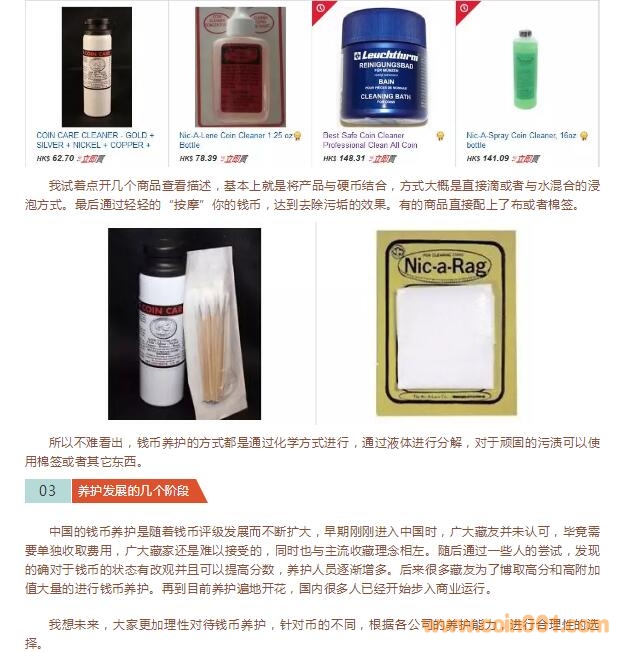 好文章!可惜有關(guān)這方面的文章太少了。自有錢幣收藏,就少不了有養(yǎng)護。原汁原味固然好,但有些錢幣也太影響美觀了,適當養(yǎng)護一下也沒什么不好的,大可不必談洗色變。前提是,養(yǎng)護方式方法須得當。我們可能有誤解,美國評級公司對于洗過的幣不給分。實際上,他們對于洗幣的標準要求還是規(guī)定得有道理的,只對于不當?shù)那謇砬逑床唤o分,只弄個90幾分。只要是恰當?shù)腻X幣清理,是照樣會給分數(shù)的。如拍賣會上亮相的評級老銀元,有好些有分數(shù)的評級銀元都或多或少地進行過清理清洗的,其幣面陰印和絲痕比較多,圖片上應都能夠看得出來的。再說,評級公司本身就有養(yǎng)護項目,又怎么可能全面來否定錢幣的清理和養(yǎng)護?!