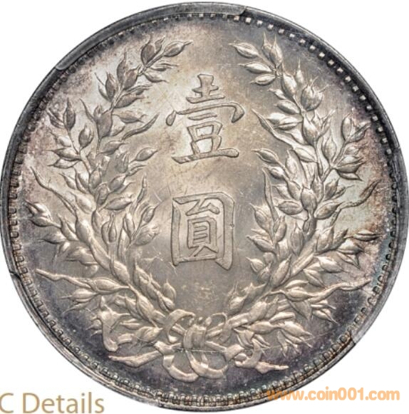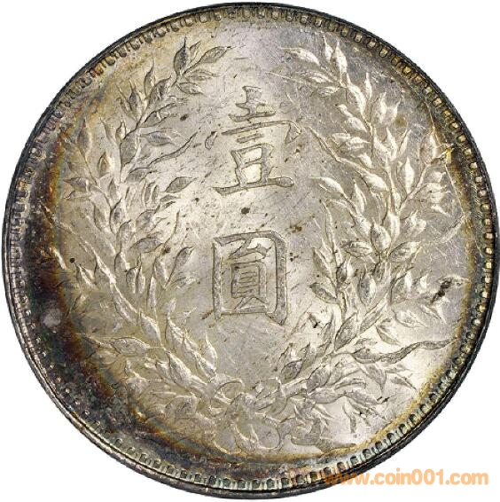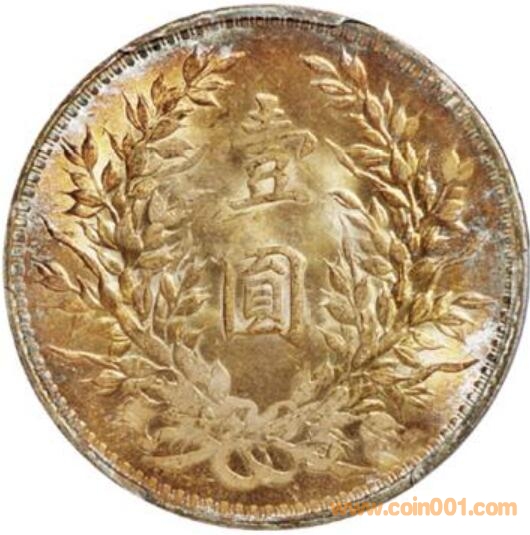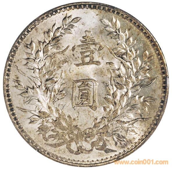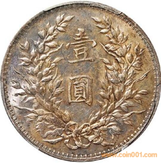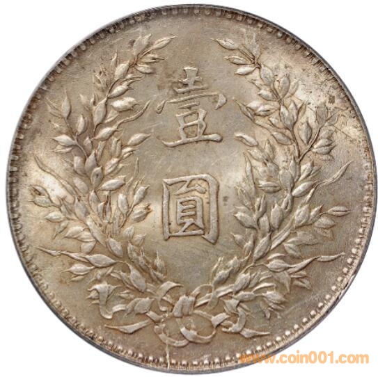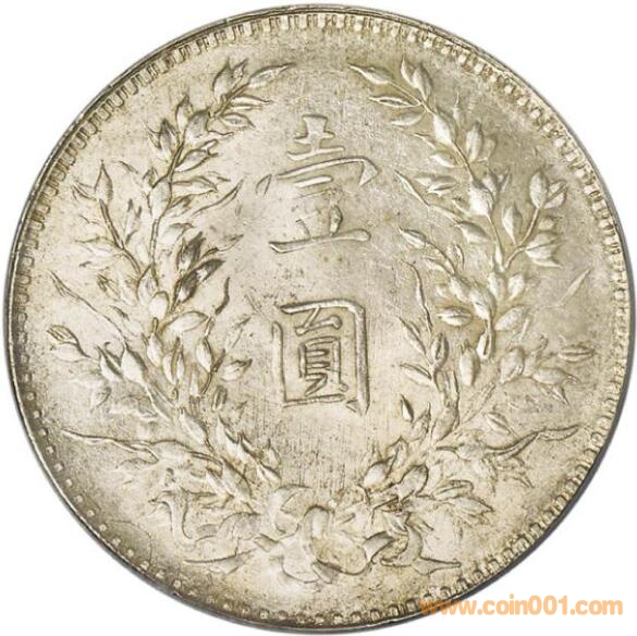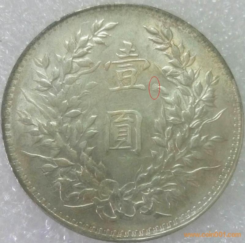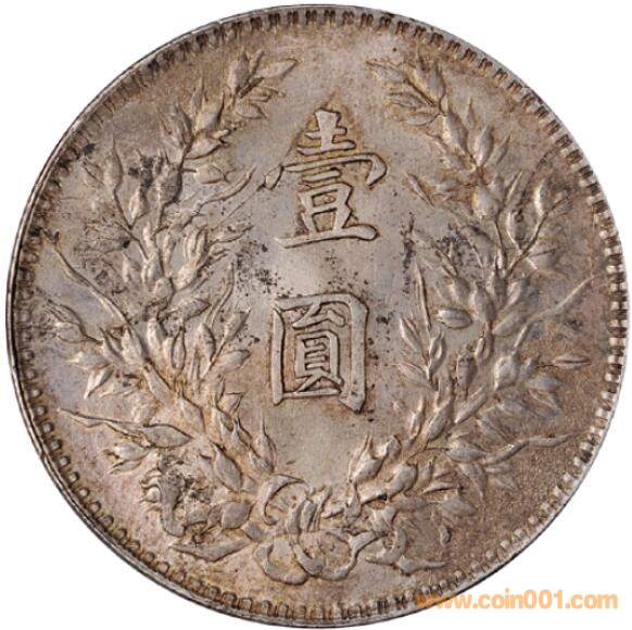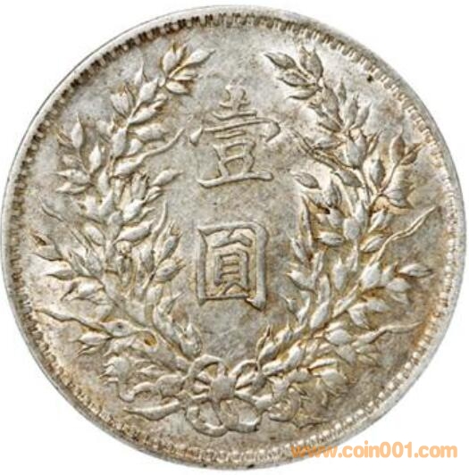 共同點是正面均為袁世凱五分側(cè)面像,上列紀(jì)年,背面圖案均是兩株交叉的稻穗,幣值均為壹圓。