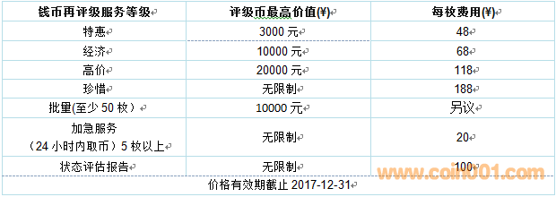 評估流程:網上提出申請/其他方式預約(電話/微信/QQ)→填寫申請表(客戶信息等)→支付再評級費用→現場收幣或者快遞郵寄→評估周期(預計收到后2周)→完成評估發貨