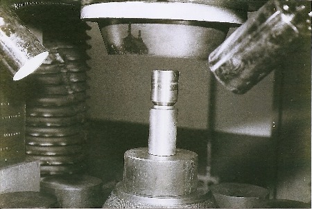圖中是費城造幣廠 1998 年使用的一臺單次擠壓翻模壓機