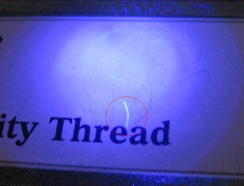 它與彩色纖維技術(shù)基本一致,隨機(jī)分布在紙張中。但它在正常光線下是無(wú)色透明的,只在紫外燈下才呈現(xiàn)出發(fā)亮的效果。