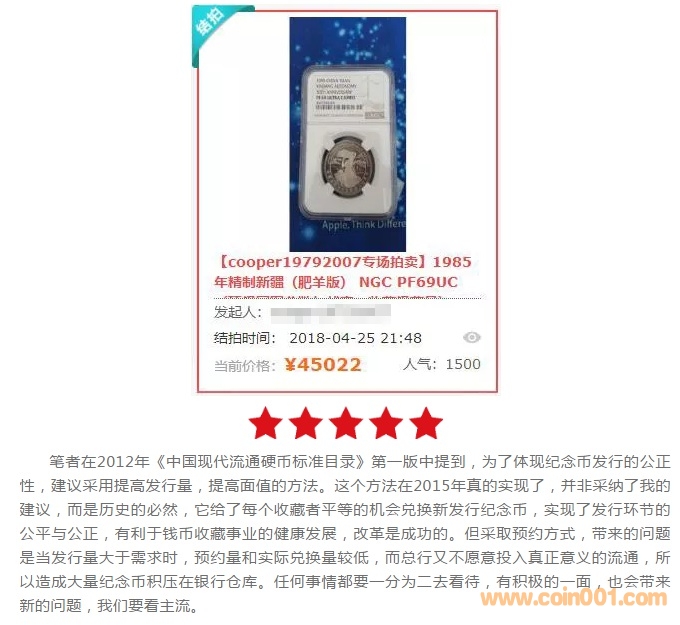 我覺得普通紀念幣的發行要想成功、一要明確發行目的是流通加紀念、人行要像發行第五套人民幣一樣廣泛宣傳、使得盡人皆知。二是根據市場流通需要、降低紀念幣的面值、使紀念幣真正廣泛用于流通。紀念幣是用來花的、不是用來炒的、不要一拿到紀念幣光想著升值。從近年來老三花幣升值的經驗看、量大不是問題、長時間大量的流通和消耗才是未來升值的保障。三是解決預約發行中存在的問題、全款預約不是關鍵、關鍵問題是解決大戶用軟件短時間大量壟斷預約的問題、讓真正喜歡紀念幣的人能順利預約。