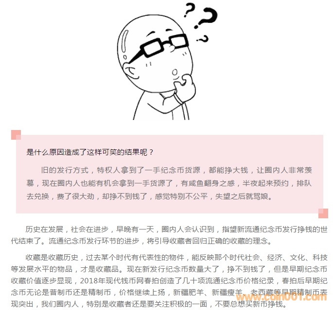所以,問題癥結所在是:不論采取何種發行方式,如果沒有預期的保值增值,發行環節和監管機構如果繼續不作為,繼續容忍黑利益鏈的存在,繼續超量發行,新入市資金在被割韭菜后將不在進入,存量資金也將消耗殆盡,新發行的紀念幣將永遠沒有春天!
