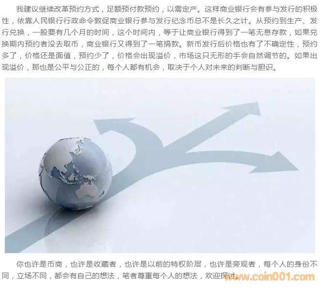 足額預付款預約后,預約者不去取幣,預約款變成商業銀行捐款,這條不可行,爭議太大了。我個人偏向現行預約方式,預約者不去取幣,納入三年禁止預約名單,總量也要每次遞減5千萬,市場總會找到一個平衡點的。