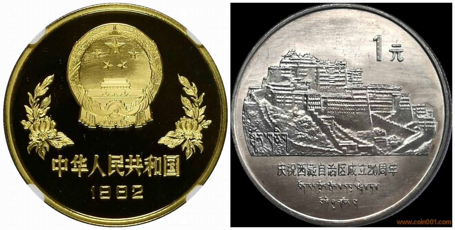 1985年老西藏非標精制幣,在鑄造前使用了普制幣胚餅進行滿版“拉絲紋”工藝的試模,即老西藏幣遠山版。