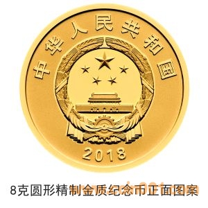 8克圓形金質紀念幣為精制幣,含純金8克,直徑22毫米,面額100元,成色99.9%,最大發行量20000枚。