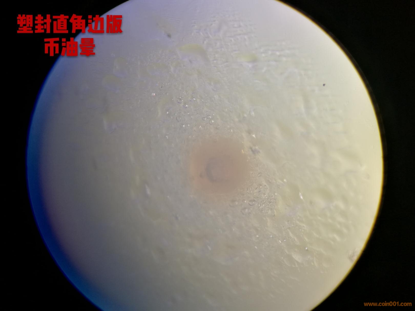 5、涂在塑封直角邊版別幣上的幣油,經(jīng)過長時間揮發(fā),在塑料封模上形成幣油暈;