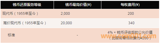 如經PCGS驗證裁定提交的錢幣不適合或不會受益于還原服務,該類錢幣仍可選擇評級服務。未被還原的錢幣,如亦未接受評級服務,需收取¥65評估費。未被還原的錢幣如接受評級服務,須收取常規評級費用及¥65評估費。