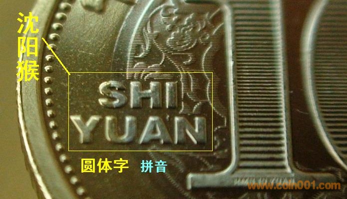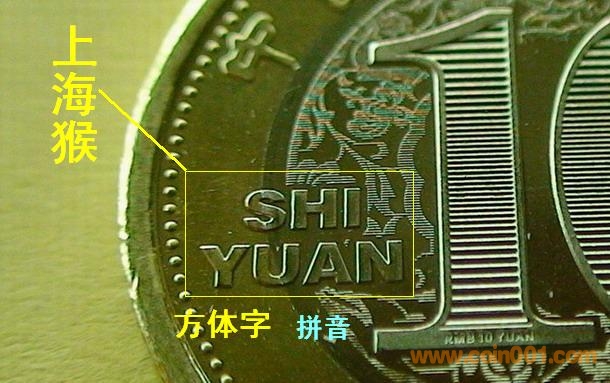 二輪猴幣上市已三個多月。市場上一直認為,猴幣使用了三種防偽標識:一是1元“1”字下面的“RMB10YUAN”字樣;二是“10”數字上面的人民幣漢語拼音縮寫 淺雕“轉光”“10”“RMB” 字樣;三是猴膝蓋上的縮微人民幣漢語拼音“rmB”字母。