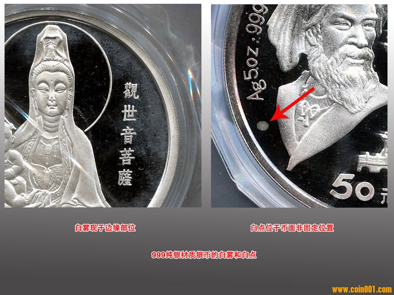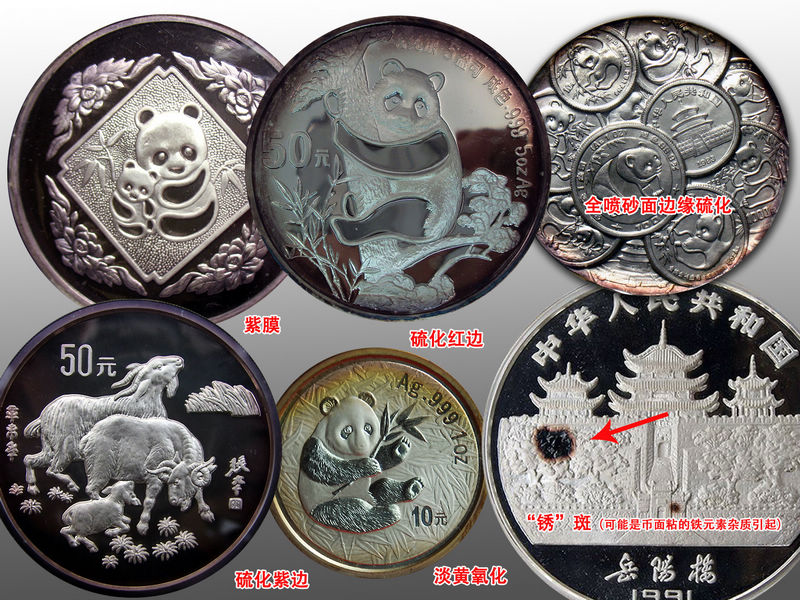 關于金幣的斑,造幣廠和金總有專人做過研究和說明,在此,補充觀點:999的金幣容易長紅斑,22K等非純金的金幣很少長紅斑,估計是因為24K金很軟,鍛帶和壓鑄的時候容易粘雜質,雜質主要是銀元素、次之是鐵元素,遇潮濕、直接接觸塑料封,易發生化學反應,形成紅斑。