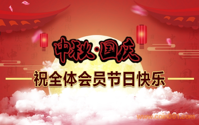 中秋、國慶雙節將至,網站工作人員和版主祝全體會員節日快樂! 網站辦公室放假時間:10月1日至10月08日。 假期網站值班團隊: 羅妍 13520200133 (負責充值、提現、認證等) 王衛華 13520838222 (負責拍賣、投訴、秋拍征集等) 現代錢幣網 2017.09.30