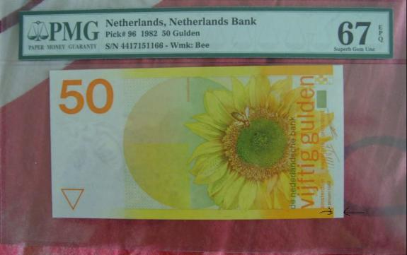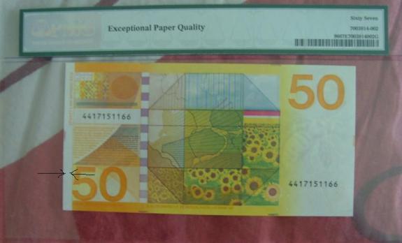 與此相反,有些國內標準視為全新連號好品的紙幣,肉眼看不出油墨層有何磨損,也沒有折痕,PMG評分卻只給到58分。(在網上見過這樣的58分小連號背綠。)