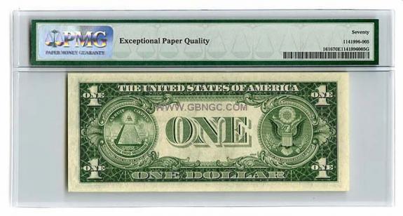 69分:This note may be nearly visually indistinguishable from a 70; however, margins or registration just minutely off. No handling和70分的相比,就差在正反面邊空對等上,69分的可能存在肉眼看不到的小偏差。紙幣沒有被觸摸過。