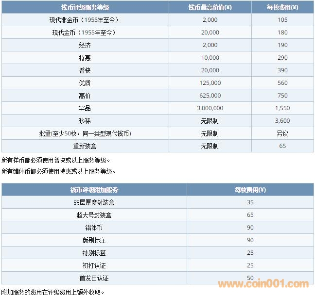 PCGS全日制評級服務接收范圍:現代幣,紙幣及經濟服務等級(價值上限為2000元)的機制幣。