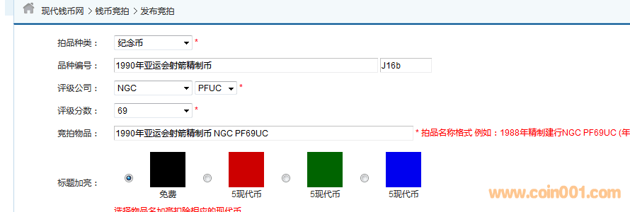 評級普通(精制)紀念幣交易