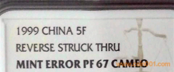 幣很普通,就是99年精制套幣中的,稀罕的是年號后多出個2,有NGC認可非人為,NGC MINT ERROR PF67CA。我孤陋寡聞,第一次見這種錯幣!是不是很有趣?有哪位藏友知道這是怎么產生的?