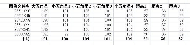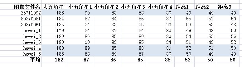 3. 測(cè)量結(jié)果報(bào)告和初步解讀3.1 大五角星中心到四個(gè)小五角星中心的間距,以及四個(gè)小五角星中心的間距