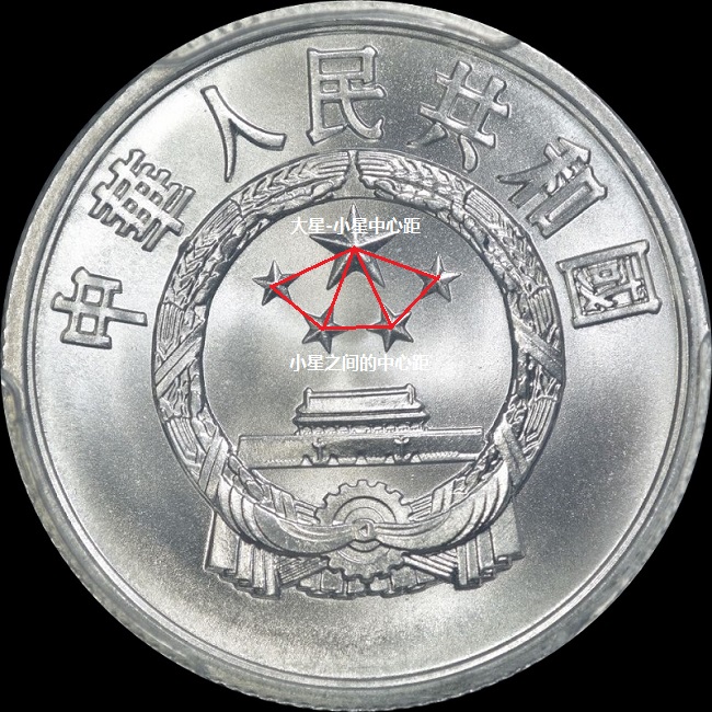 b. 在這兩個(gè)版別中,最直觀的是四顆小五角星在尺寸上的差異,那么大五角星的尺寸是否也有類似差異?