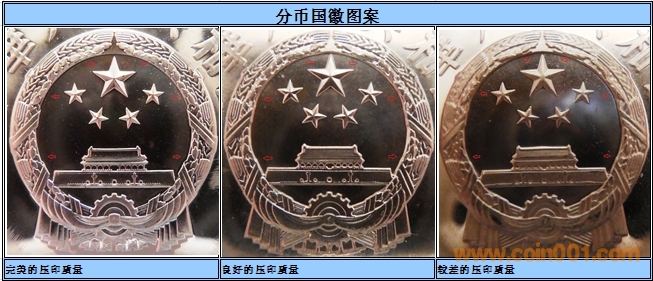 備:這里我要說明普制幣與精致幣由于工藝不一致,對于壓印的質量也存在明顯的區別,我們不能采用相同的判定標準