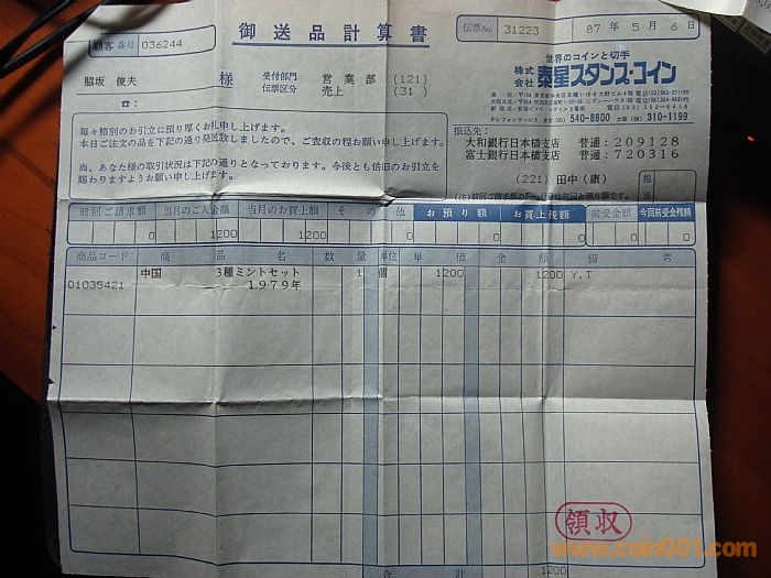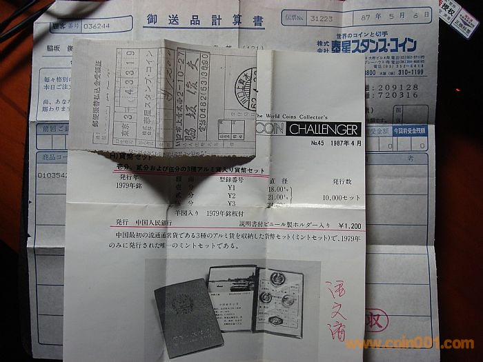 近期新得一本79年藍本分幣冊,保存極好,由朋友在日本收藏家協會內部拍賣會高價拍得,帶有當年購買時日本泰星公司的銷售說明書和原始單據,網上未見相同報道,現與大家分享:
