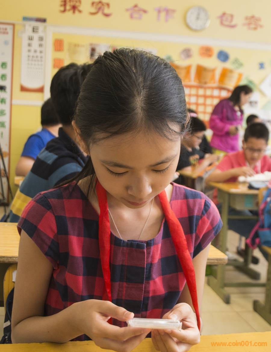 講座期間,孫老師給小學生提了幾個問題。其一,秦始皇統一六國做過哪些事情?其二,張之洞奏請皇上,開鑄銀元,皇上準了,當時皇上是誰?其三,流通紀念幣的用途?其四,關于收藏意義的問答?聽到小學生的回答,小編我已經汗顏。基本上小學生都對以上問題回答如流,并且是在沒有歷史課的前提下,通過課外讀物獲取的知識。期間我最欣賞一個同學的回答,他說道“如果我收藏錢幣,我就有了地位,因為我有別人沒有!”牛掰、佩服...... 其實作為每個圈內人,我們都曾經問過自己一個問題,“為什么我沒有早進行錢幣收藏?”我想究其原因還是在于那個進入錢幣收藏圈子的切入點。倒退很多年以前,我們要是能遇到一次同樣的講座,可能我們前面的問題也就不是問題了。這也是孫老師這次講座希望的,培養祖國未來的收藏接班人。幸運的是,現在的小學生都多少了解錢幣收藏,幾乎每個小孩子都知道二羊、二猴、航天。或許因為今天孫老師能給他們講座。說不定未來10年之后,他們其中的一員成為現代錢幣網的會員。