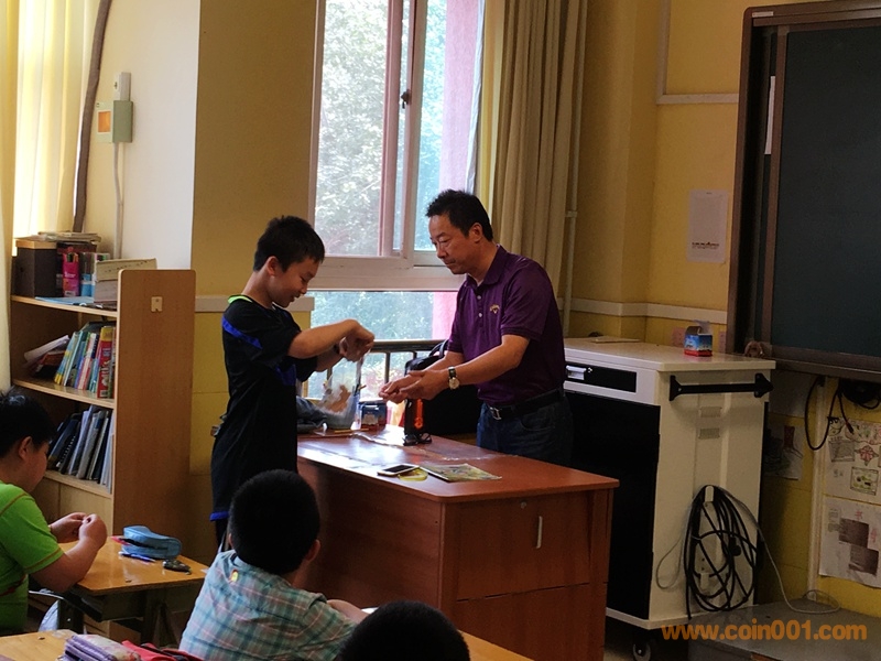 5月13日下午,孫克勤老師應北京市朝陽區白家莊小學6年級的邀請,對小學生進行一次《錢幣收藏》的講座。對于這次講座,孫老師進行仔細斟酌,考慮到聽課小學生的年齡和知識基礎,我們希望以淺顯的方式通過更多的互動,讓小學生了解中國錢幣,了解流通硬幣,了解錢幣收藏。并讓他們能在心里埋藏錢幣收藏的意識。但通過實際講座過程,發現現在的小學生已經遠遠超出我們的理解,知識水平很高,知識層面很廣,對于錢幣收藏都有著濃烈的興趣。