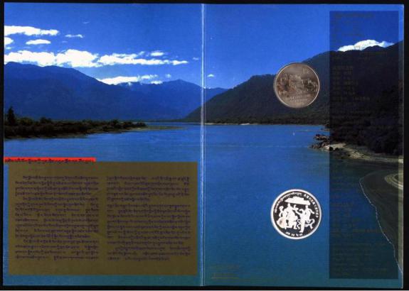 關于老西藏流通紀念幣卡冊問題,市場最常見的就應該是康銀閣公司2001年5月康銀閣裝幀發行《慶祝西藏自治區成立20周年及西藏和平解放50周年紀念幣珍藏冊》,發行量10萬套,內裝老西藏、新西藏流通紀念幣一枚,外加1盎司銀章一枚。那么這個雙幣冊是老西藏流通紀念幣最早的唯一的裝幀冊嗎?很多人可能會回答,是的,因為老西藏紀念幣發行于上世紀80年代中期,當時沒有康銀閣正規的裝幀冊。咋想一下,這個回答應該沒有問題,但實際上老西藏還有一種裝幀冊,并且是康銀閣聯合裝幀的,它就是市場罕見的《美麗的西藏紀念幣卡》冊。