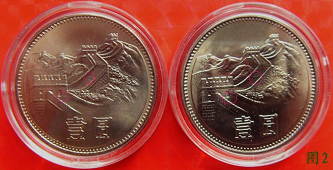 我給長城麥穗幣版別命名,不是按照造幣廠命名,而是按照圖文根本區別加以命名,考慮到主要是由上海或沈陽造幣廠生產,才命名“上海版”“沈陽版”。請大家一定要理解版別的概念,————因原模的設計、雕刻等的區別導致壓印的硬幣具有圖文、重量、大小、厚薄等的根本區別,或者因材質的顯著不同而鑄造的硬幣,稱之為不同版別;而因工作模的工差(如粗、細版)、鑄造工藝(如背逆幣,深、淺打,圓、直齒)、生產質量(精鑄、初鑄、殘次幣等)等因素導致壓印的硬幣出現的非根本的差異稱之為趣味幣。版別的區別是根本的、固定的和批量可重復的,而且不會隨著時間的流逝而改變;趣味幣的區別是非根本的或者其產生是隨機的、偶然的,而且要么是區別不明顯不適宜作為不同版別品種對待,要么會隨著時間的流逝逐漸消退而掩蓋于歷史長河之中。