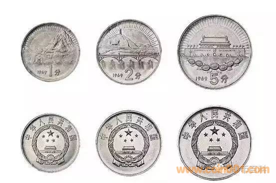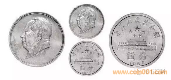 1969年一百元鈔這張整體通紅的百元鈔是1969年鬧文革的時候設計出來的,據說是要加入三版幣的,但是被淘汰了,只是作為樣稿被完整保存了下來。 票面的正面是工農兵形象,代表了無產階級,背面是人民大會堂,代表黨和政府。我們可以嗅到濃厚的文革氣息。這份樣稿設計完整,有說法稱是因為文革的爆發而擱置。但它的設計時期比較特殊,同時也是我國實行新舊幣改革后最早的百元鈔,也是四版五版百元鈔的搖籃,有著相當高的研究價值。 1975年2元鈔1975年印制的2元樣幣,此時是文革末期。正面是天山的軍民橫刀立馬的英勇形象,背面則是大型物資運輸車。 它的制作工藝在當時相當精湛了,在透視的情況下,牡丹花卉圖案完全重合,說明當時我們就已掌握了紙鈔防偽 正反圖案的取意非常好,局部的圖案也細膩美觀,但似乎整體的布局有點不均,內容過于集中,邊緣有點空缺,不知道這是那個時代的風 格還是別有深意呢 1975年2元鈔1975年印制的2元紙鈔,跟上面的紙鈔是同時期,風格也相像,正面是文革時候有名的英模王進喜,而背面則是正在建設中的大慶油田。 它的票面雕刻精美,印制工藝也是當時高水準,以著名人物為圖案,富有時代特征。但此幣很少留存下來,珍稀不已。 1969年1/2/5分幣圖中的1/2/5分幣是在1969年設計的樣稿,鋁制材料,背面的圖案依次為遵義會議遺址、延安寶塔山和天安門。這枚樣幣和我們現在所使用的硬幣最大區別是,年份在背面面值的左側,而不是在正面的國徽下面。 同年還有類似的樣幣如下,我們可以看到與上個版本有細微的差別,年份也放在了正面的國徽下面。 1969年5/5/1分幣1969鑄造年的5/5/1分幣,鋁制光邊。正面圖案是不同時期的毛主席肖像,背面圖案從左往右分別是黨一大召開地南湖游船、遵義會議遺址、軍艦,并且把面值和年份都放在了背面。 1969年5分幣這枚1969年的5分樣幣沒并有官方相關記載,但是也拿出來作為說明,正面是偉大毛主席側面頭像,背面是五星照耀下的天安門城樓。 1969年1/2/5分幣1969年鑄造的1/2/5分樣幣,鋁制,從左往右直徑分別是24/21/17毫米,圖案分比為工人形象的男人、農民形象的女人和學生形象的孩子。我們可以看到圖案有明顯的凸起感,人物形象彰顯得分外鮮明。 1975年1/2/5分幣圖中是1975年鑄造的1/2/5分鋁制樣幣,對比上圖不難發現整體有了明顯的調整,面值和年份放的位置很隨意沒規律,凹凸感也沒那么強烈了。想仔細了解的朋友可以去翻閱《中國現代流通硬幣標準目錄》的47、48頁。 1975年1/2/5分幣圖中為1975年鑄造的1/2/5分鋁制樣幣,從左往右的圖案分別是大豆和水壩、棉花和工廠、麥穗和拖拉機,充分地反應了當時加強土地建設的景象。想仔細了解的朋友可以去翻閱《中國現代流通硬幣標準目錄》的49、50頁。 這些錢幣雖然沒流通,但是他作為歷史的見證必將在歷史的長河中被人銘記。 [ 此帖被廣天藏品在2016-08-29 20:29重新編輯 ]