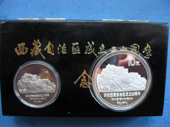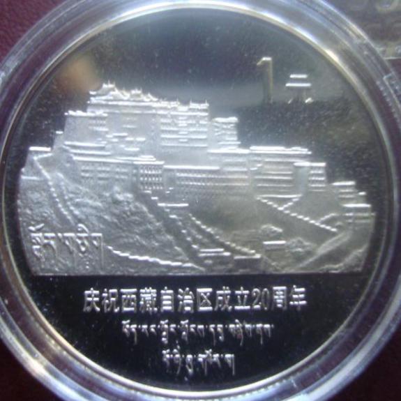 (2)10.5克非國標精制幣。重量:10.5克(有公差),厚度比其他幾個版別都要厚,但直徑相同。發(fā)行量沒有官方數(shù)據(jù)。與10元西藏紀念銀幣同套發(fā)行。套裝幣英文說明書聲稱發(fā)行量1萬套,但官方公布的銀幣發(fā)行量為3000枚。單枚1元精制幣沒有獨立發(fā)行記錄。幣底面存在所謂“閃光性損傷”,鏡面度也不高。