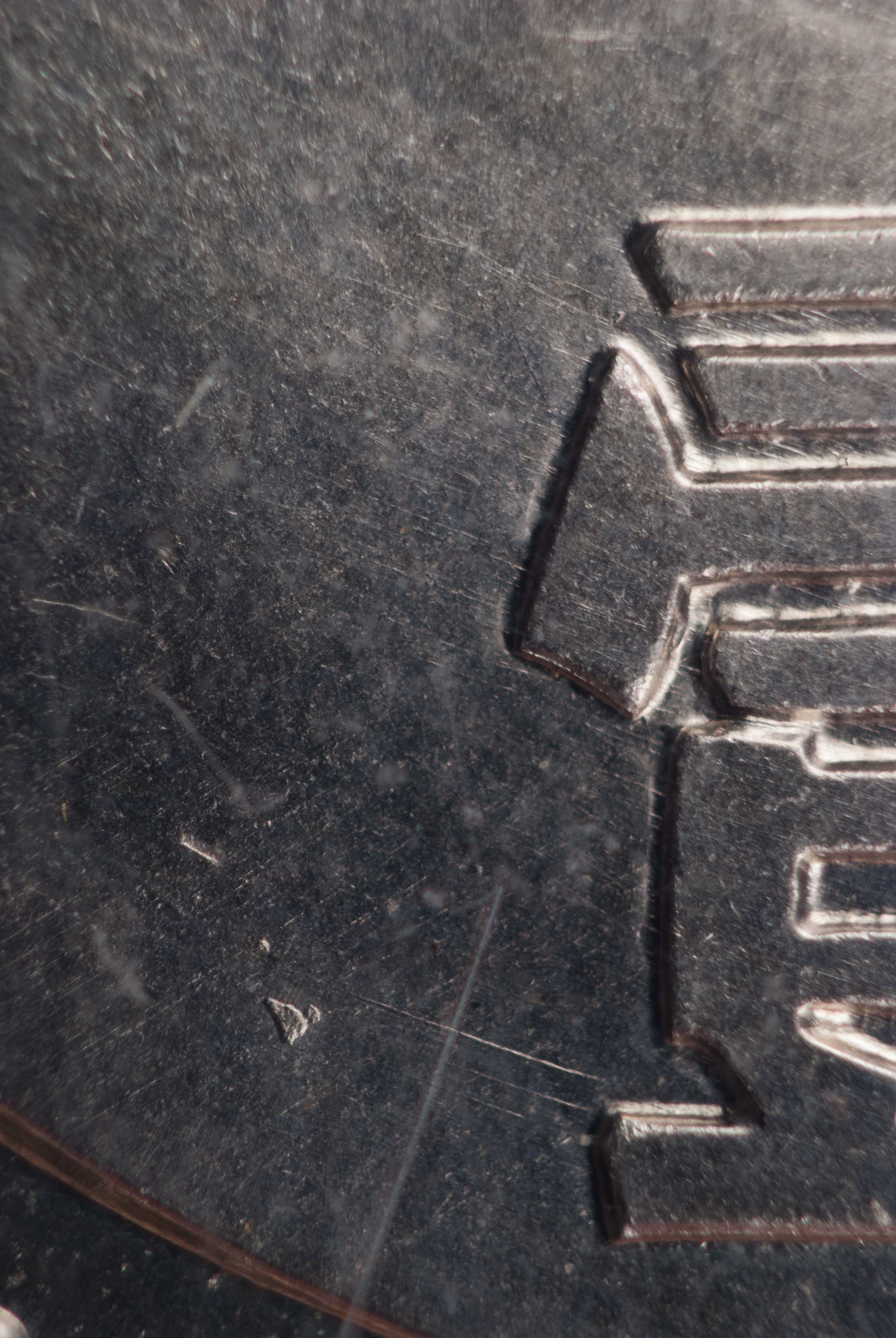 圖14:小黑本長城幣正面“圓”字上方拋光痕