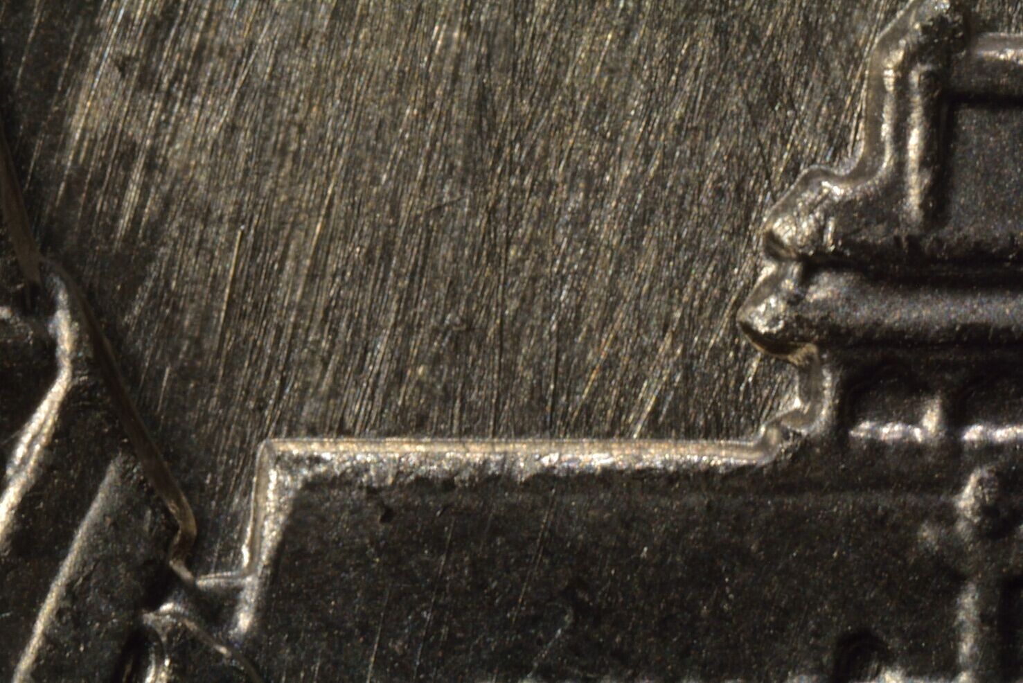 本文提及的長城幣都是指1980年無磚版長城幣。鑒于拋光痕是對小黑本中長城幣進行鑒定的重要模具特征之一,有必要對此說明一下,英文原文是 Die polish,是指對工作模具進行打磨時候產生的痕跡,一般在工作模上產生凹痕,而在幣面上體現出對應的凸起痕跡。是用來鑒別不同工作模的最直接證據之一。