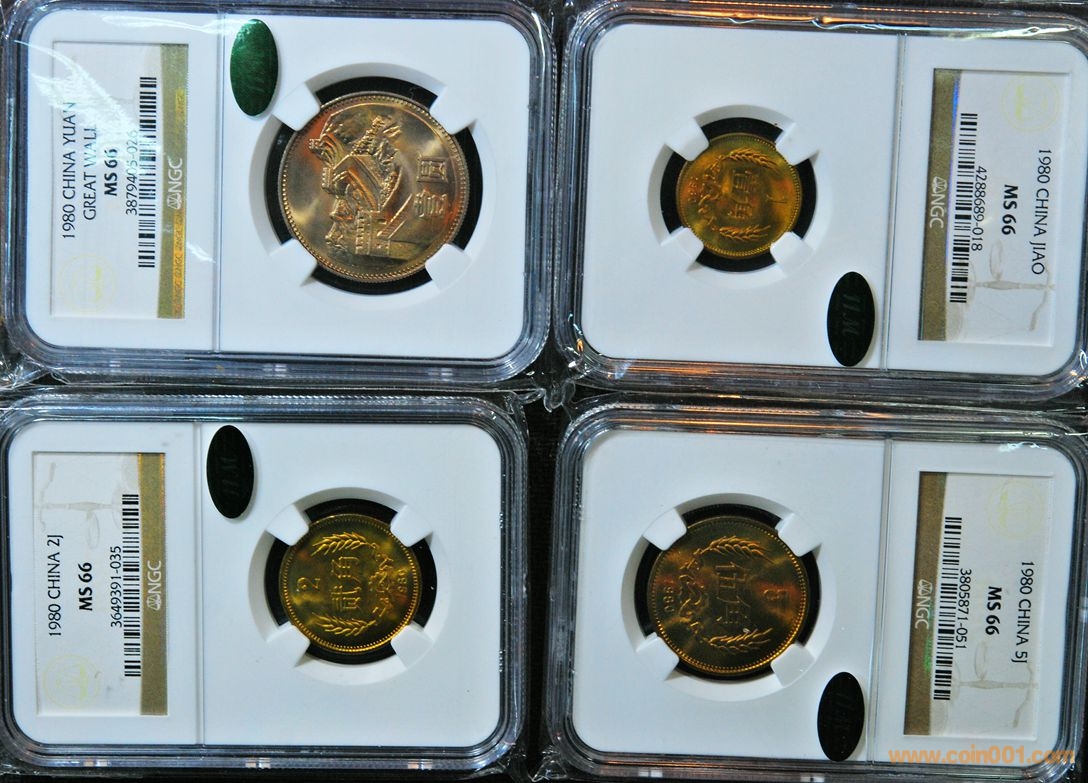 第三件展品:NGC-MS66分老標再評級綠標上海小磚版80一套,精選標配,小磚紅銅,黃金卷彩,稀缺小磚;僅此一套,有緣者得;