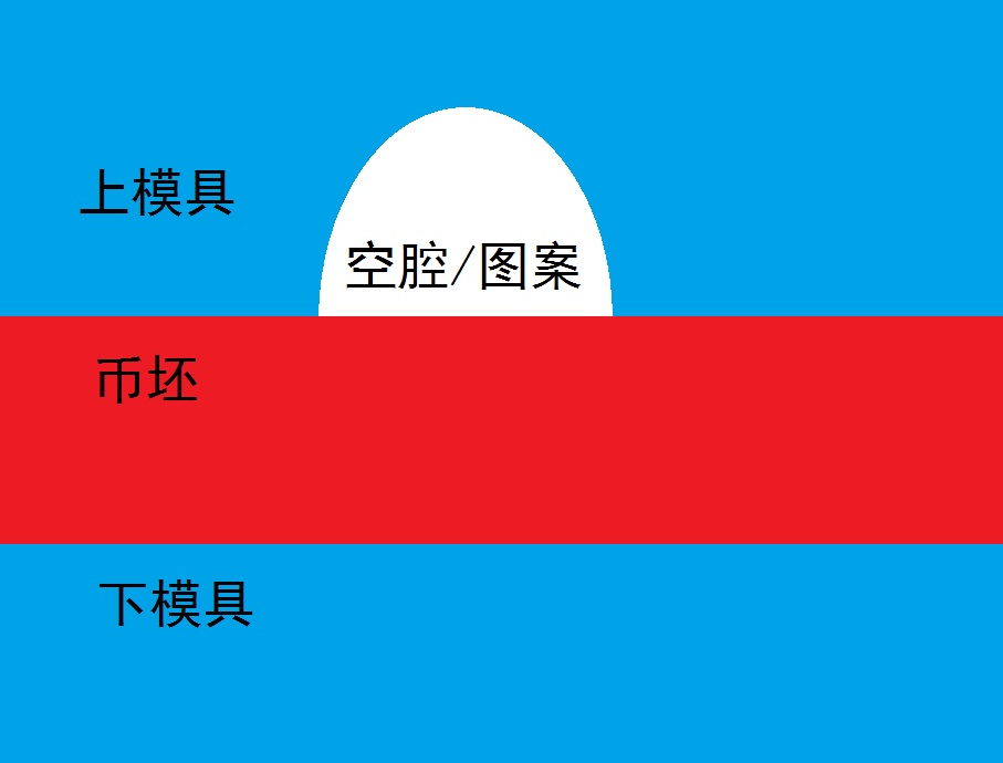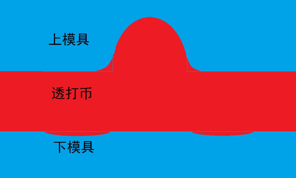 4. “經過思考筆者認為透打完全是另外一個過程形成的,跟力度和坯餅厚薄沒有直接關系。...所以,透打的成型,從力度和坯餅上找原因是緣木求魚,根本原因還是要從模具上找,成幣幣面有凹凸,那就是因為模具表面有了對應的凸凹。”