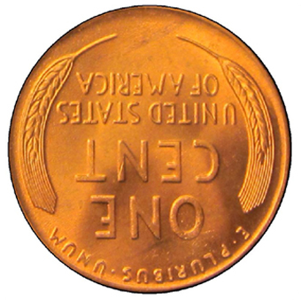 這枚林肯分幣的背面可以看到正面林肯胸像的輪廓。簡單說來就是幣模上空腔(林肯胸像)周圍的部分受到的壓力最大,這部分壓力會透過坯餅傳遞到下模上,造成下模上金屬流動的不均,逐步出現凹陷。這樣的凹陷印到幣面上就形成突出的鬼影(透打)。這個說法和你的觀點比較相近。