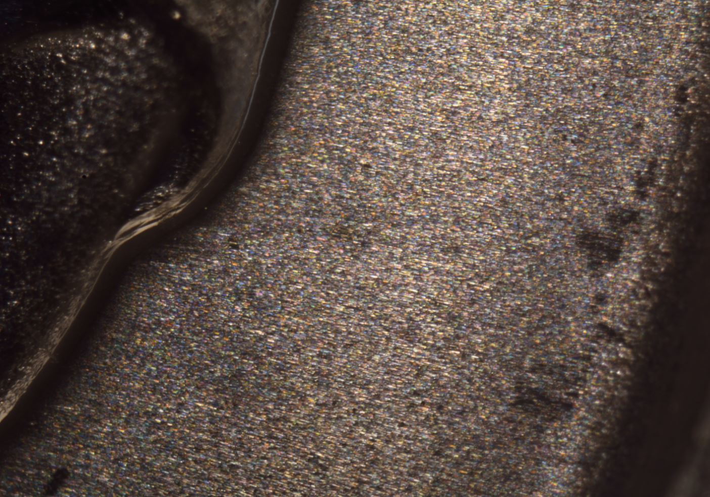 這上面的鑄紋還是早期狀態,大部分是小顆粒。就這樣,底板的鏡面也被徹底毀了。本該是平整、光滑的底板變得粗糙不平,像鏡面那樣反光是甭想了。