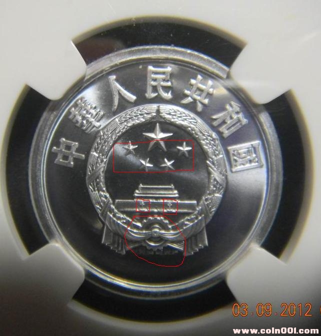 第三:就是國徽下面“齒輪”中的噴砂程度不同,沈陽版的齒輪內的噴砂“較重”;而上海版就能很清晰的看見內部與齒輪的不同。對于第三點可能要兩枚都拿到一起對比才能加以區分。