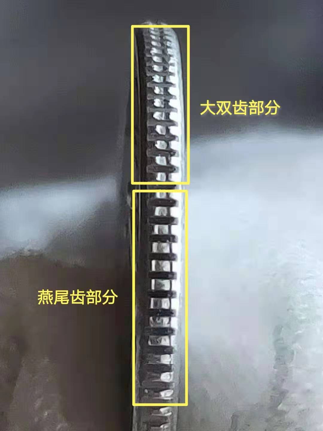2、錯齒數基本不變,大雙齒連燕尾和大三齒的長度幾乎不變,見標準圖示圖;